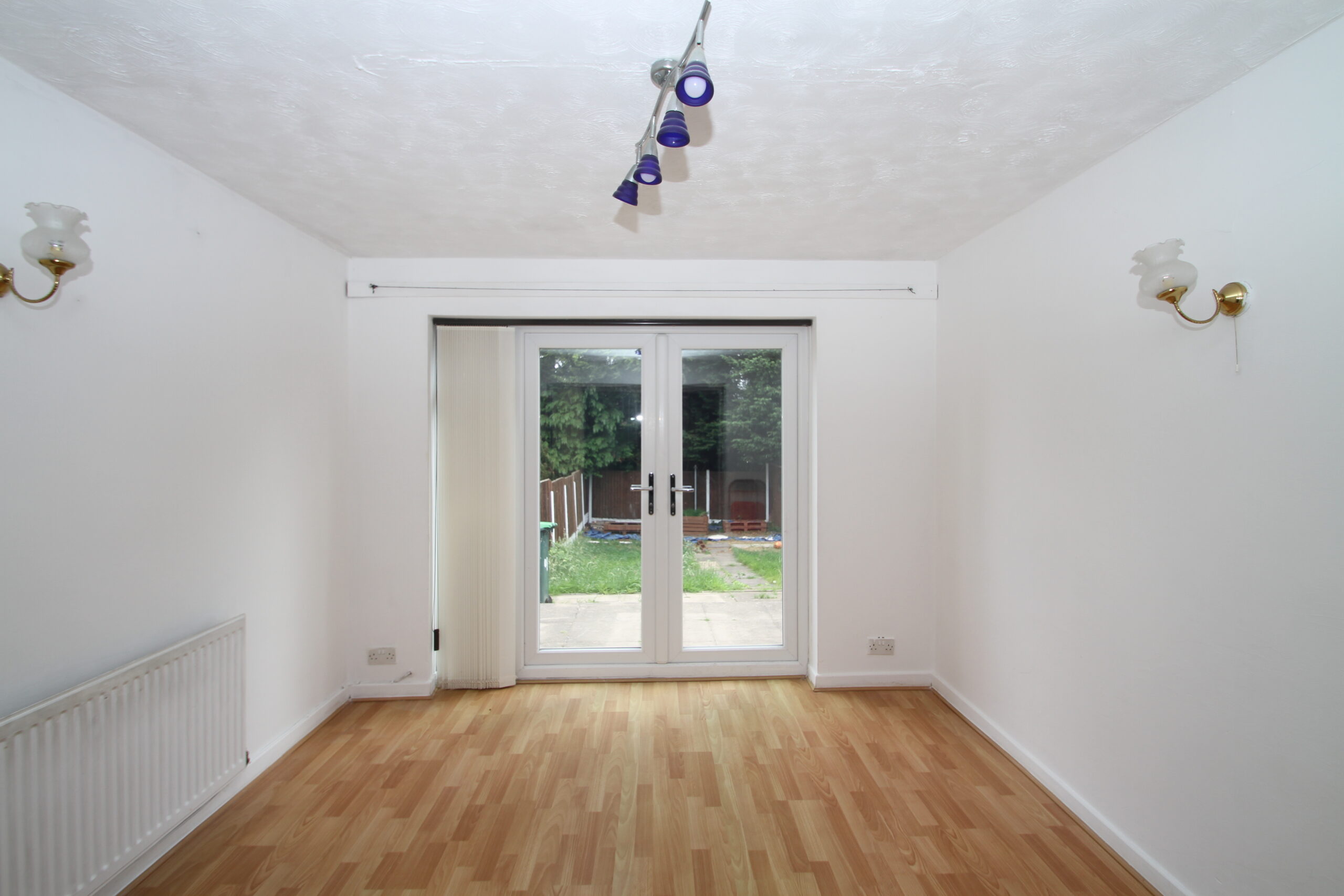 Laminate flooring, single panel radiator, two wall mounted light fittings and set of track spotlights to ceiling, double glazed ‘French Doors’ provides direct access onto patio and rear garden beyond. From breakfast kitchen, double-glazed door with obscured glass and single step-down leads into:-