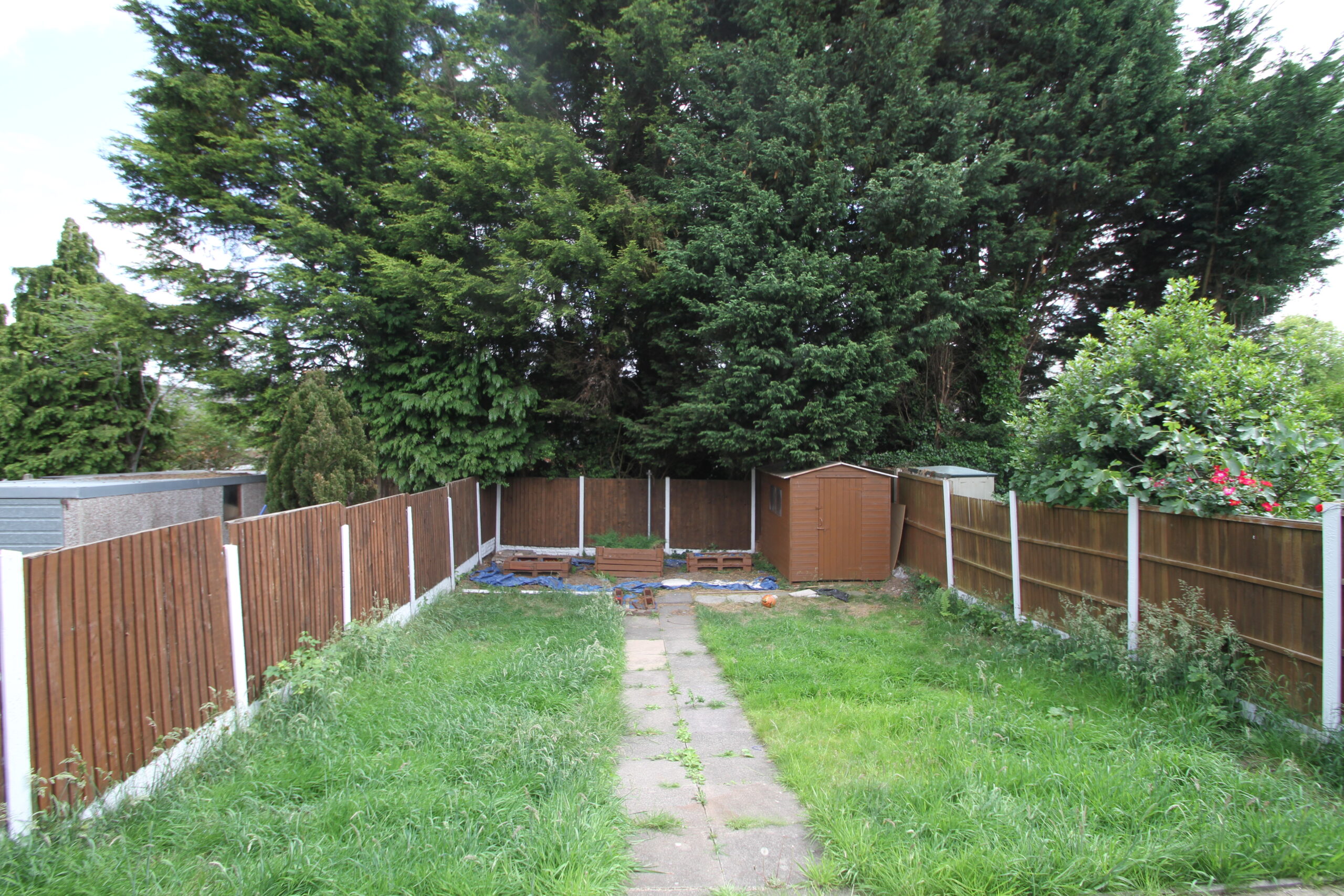 From dining room, step down onto tiered paved patio leading into fully enclosed rear garden which’s benefits from not being overlooked at the rear. Mostly laid as lawn has been divided by the paved central pathway which leads towards raised planting beds and garden shed (to remain); a ‘shady-spot’ at the rear boundary has been created beneath the canopy of neighbour’s conifer trees which also acts as natural screen.