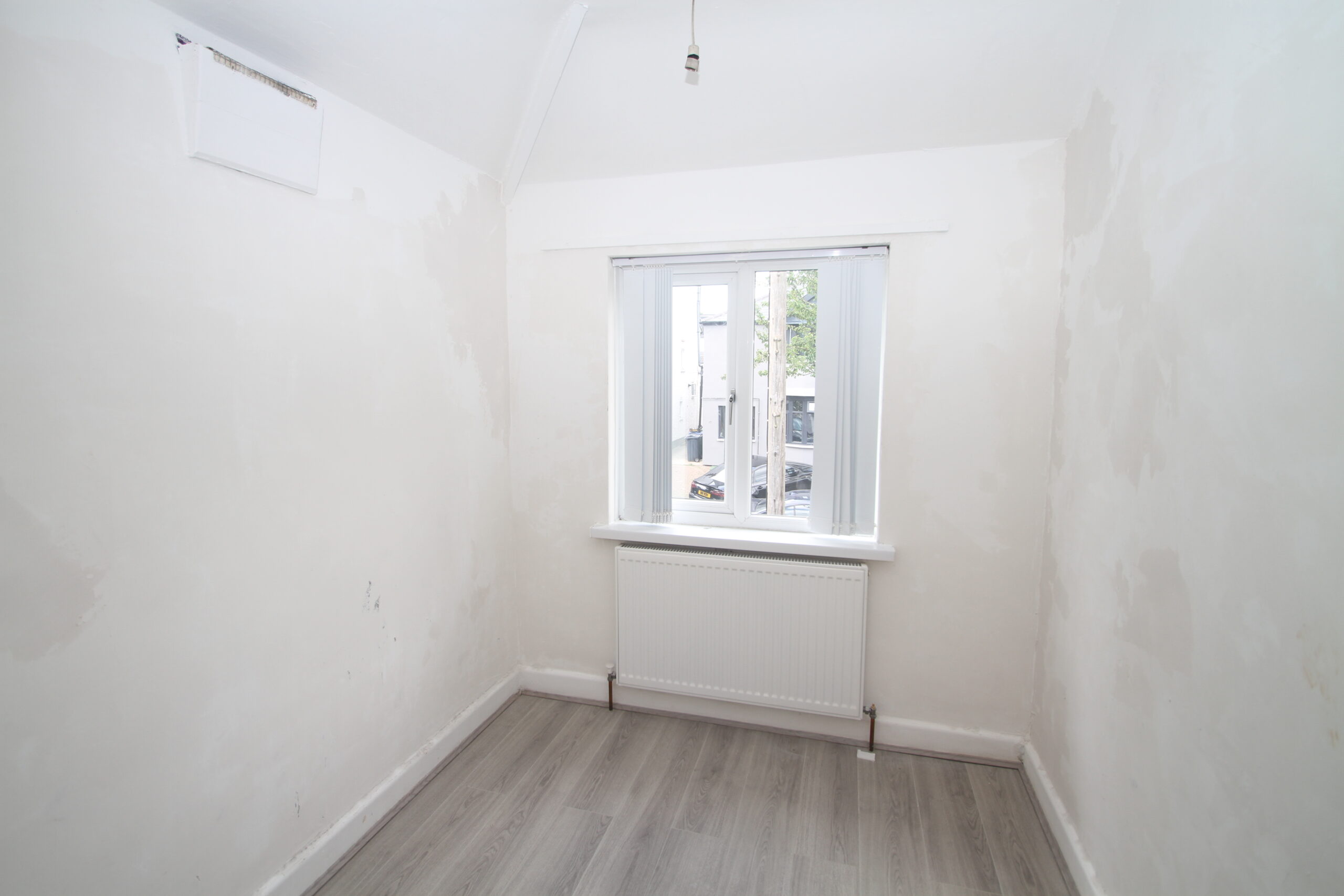 Laminate flooring, pendant light fitting to ceiling, single panel radiator and double-glazed window to front elevation. From landing, panelled door towards rear leads into:-